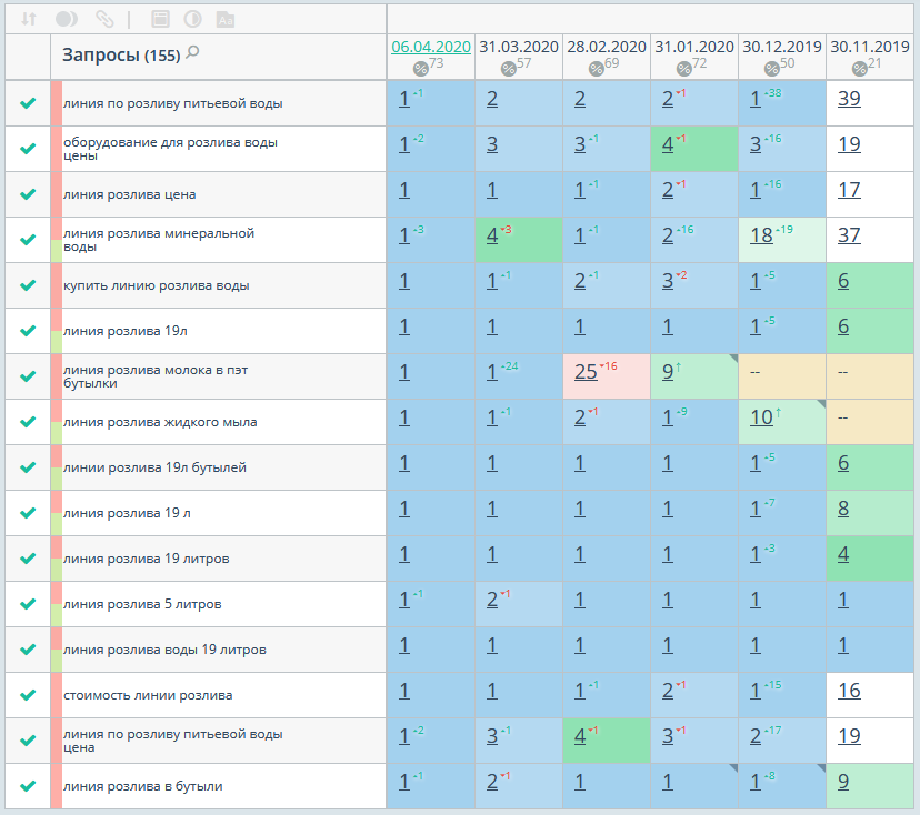 Сбор высокочастотных и среднечастотных запросов по теме продажи оборудования для розлива жидкости, оптимизация страниц сайта под запросы для их выведения в ТОП-10 выдачи поисковых систем: