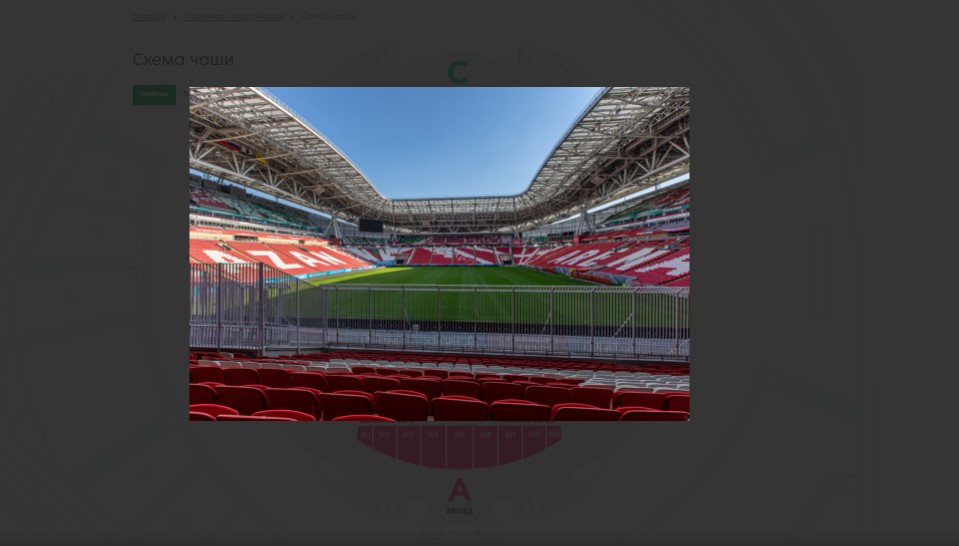 Также на сайте реализован раздел про историю стадиона, видео и фото с самых ярких событий, инфраструктура, навигация и многое другое.